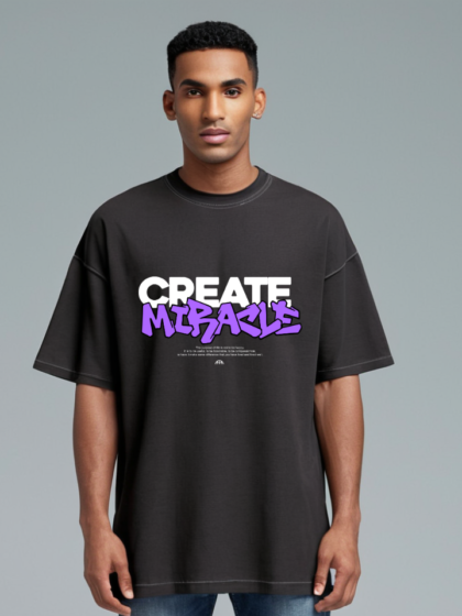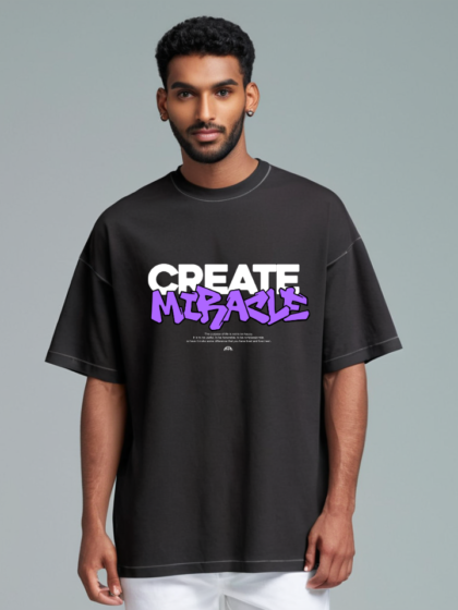 Men’s Black Oversized Graphic T-Shirt – Create Miracle & Virtual Reality
