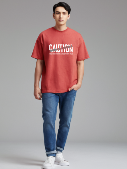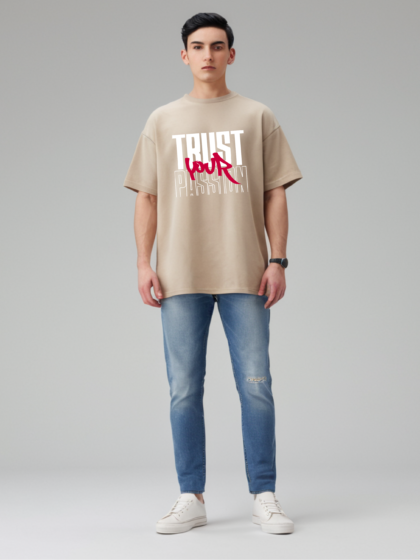 Men’s Beige Oversized Graphic T-Shirt – Trust Your Passion Design